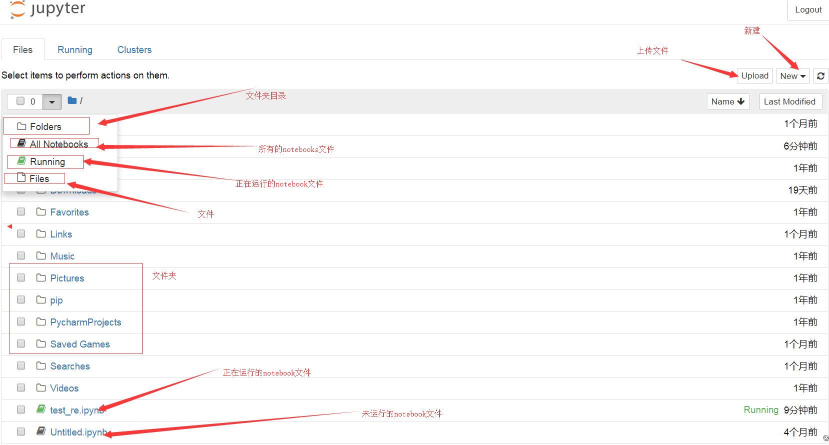 点击菜单栏中的Running标签,可查看正在运行的Notebook,也可以Shutdown某个运行中的Notebook,如图4-2所示。