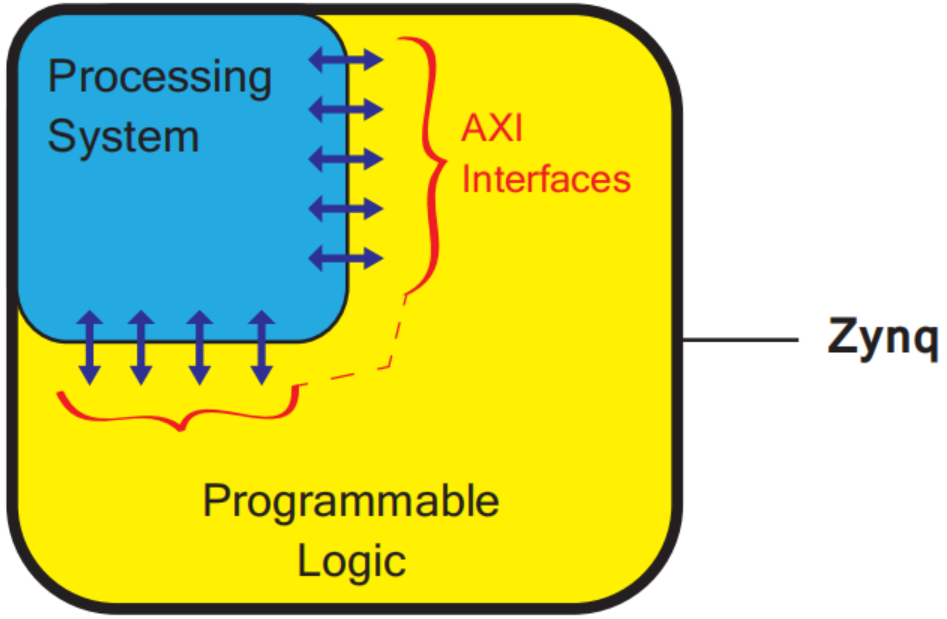 由图1-2可知,ZYNQ主要包含 PS(Processing System, 处理系统)和 PL(Programmable Logic, 可编程逻辑)两大部分。PS通常使用ARM Cortex系列的嵌入式CPU,一般采用同构多核CPU,高端芯片则可能采用异构大小核处理器。PL则一般指FPGA的可编程逻辑资源。此外,PS和PL通过 AXI总线 进行数据和控制信号的交互。