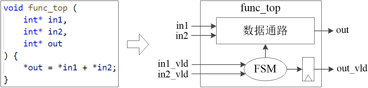 类似地,函数的参数将被综合成模块的输入/输出端口,如图1-6所示。