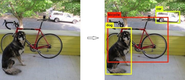 可以将上述问题分成2个子问题:(1)找到图片中哪些位置、哪些区域含有目标对象;(2)识别这些区域中的目标对象是什么。