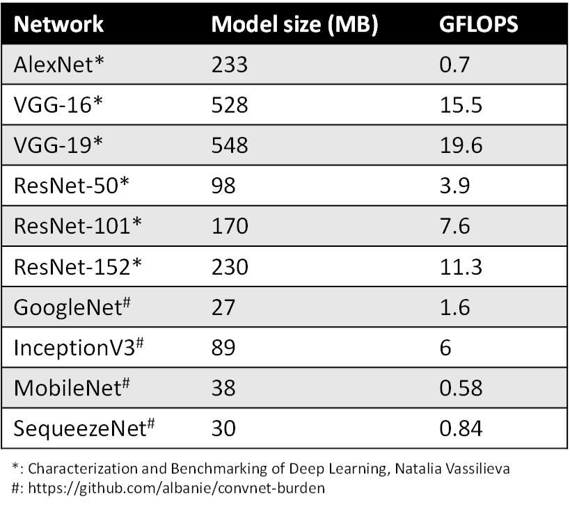 达到可接收的预测准确度(如MobileNet和SequeezeNet等);