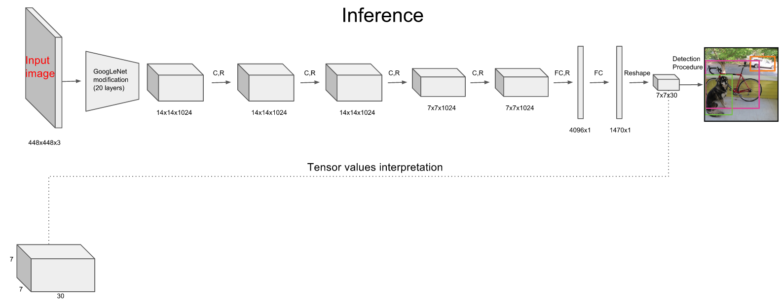 Tiny YOLOv2目标检测算法具有预处理、网络推导和后处理三个步骤: