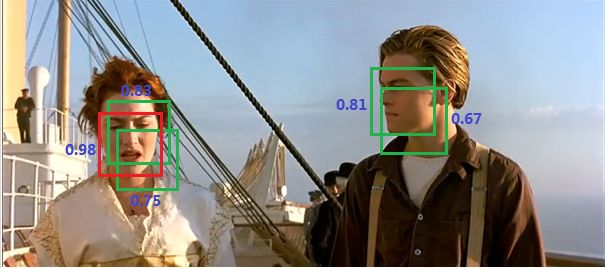 3)对每个BBox进行NMS操作,将重合候选框的置信度设置为0;