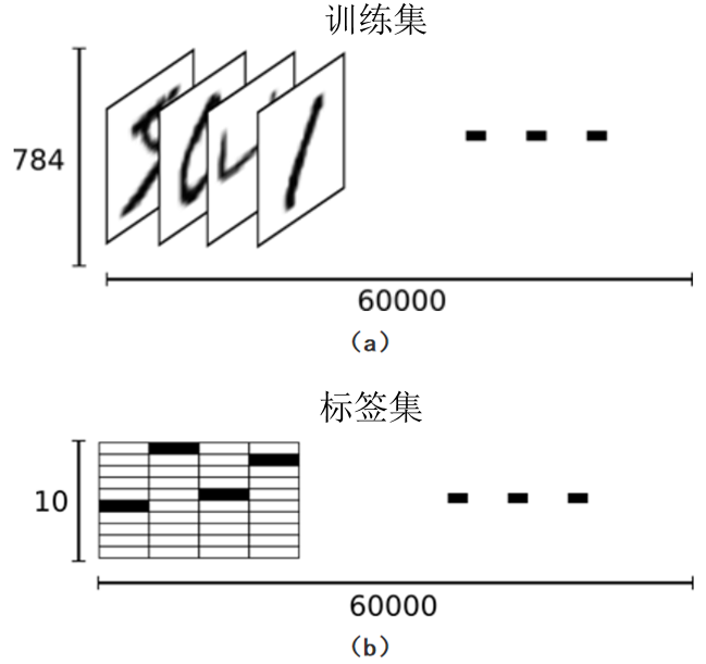 MNIST数据集包含训练集和测试集2部分。其中,训练集共60000张手写数字图片(55000张作为训练集,剩余5000张作为验证集);而测试集则包含10000张手写数字图片。训练集是一个维度为[60000, 784]的张量——第1个维度表示训练集图片的数量,第2个维度表示每张图片的像素点个数。此张量里的每一个元素,都表示某张图片里的某个像素的强度值,值介于0和1之间。