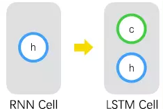 在图1-2所示的RNN网络结构中,Cell只能存储当前时刻的输出,因而对短期的输入比较敏感。为了增加RNN对长期输入(或长序列输入)的预测效果,现在给Cell增加一个变量,用于存储Cell的当前状态,并由此形成LSTM Cell,如图1-5所示。其中,被称为单元状态(Cell State)。