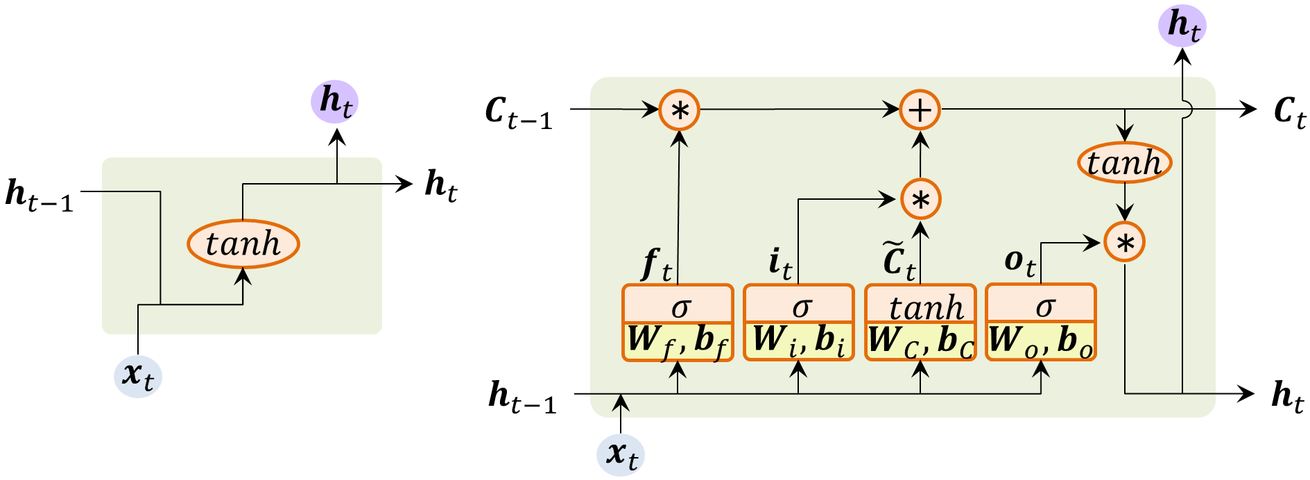 Step2: 基于式(1-2),利用输入和Cell在前一时刻的输出,计算;